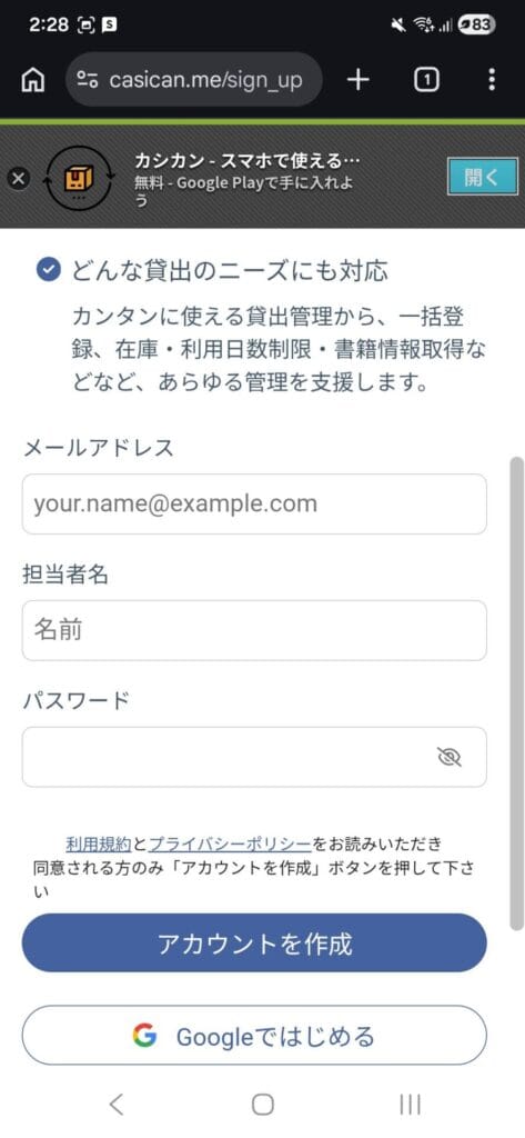 カシカンはアカウント作成後、すぐに利用を開始できます。